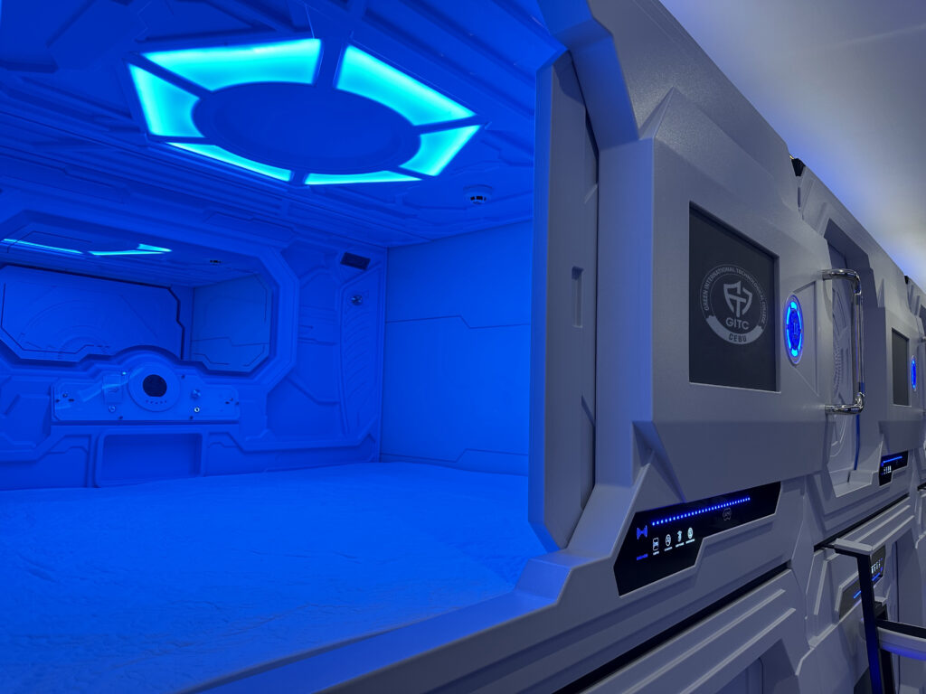 カプセル寮滞在で費用を抑えながら、質の高い授業を提供できるのが最大の特徴です!- カプセルホテル滞在で費用を抑えて留学可能